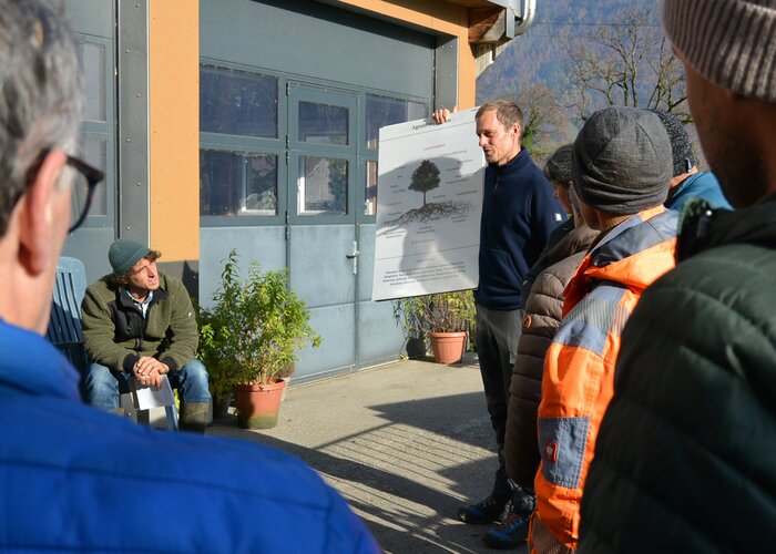 Die Öffentlichkeit besucht den Puurazmorga auf dem Betrieb Las Sorts in Filisur und erfährt spannendes zur regenerativen Landwirtschaft auf diesem landwirtschaftlichen Betrieb.
