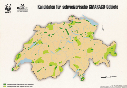 Gestützt auf die Berner Konvention scheiden Staaten europaweit Schutzgebiete aus, um seltene und gefährdete Lebensräume und Arten zu schützen. In der EU sind das Natura 2000-Gebiete, in nicht EU-Länder das Smaragd-Netzwerk, auch als „Areas of Special Conservation Interest“ bezeichnet. So sind Arten und Habitate definiert worden, für die Europa eine besondere Verantwortung trägt. In der Schweiz wurden bislang 37 Gebiete für das Smaragd-Netzwerk, aufgenommen.