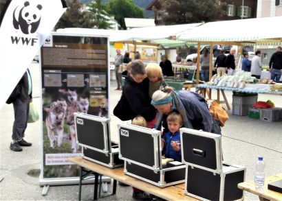 Lernen Sie den Wolf, seine Lebensweise, sein Verhalten und die Konflikte kennen. Mit der WWF-Wanderausstellung kann man sich diesem einheimischen Tier spielerisch und interaktiv nähern. Die WWF-Wanderausstellung kann überall eingesetzt werden. Auf Märkten, an Anlässen oder in Schulen. Sie spricht sowohl Kinder wie auch Erwachsene an.
